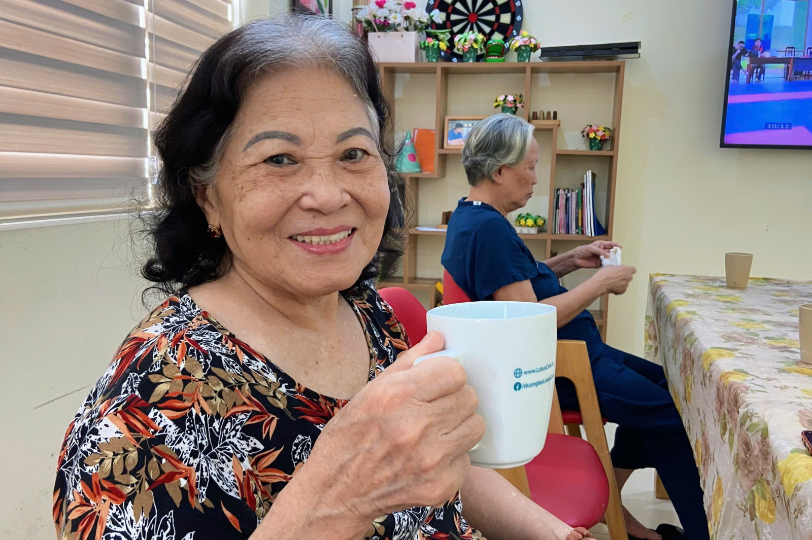 Người cao tuổi tại Lotus Care thường xuyên bổ sung nước trong điều kiện thời tiết nắng nóng.