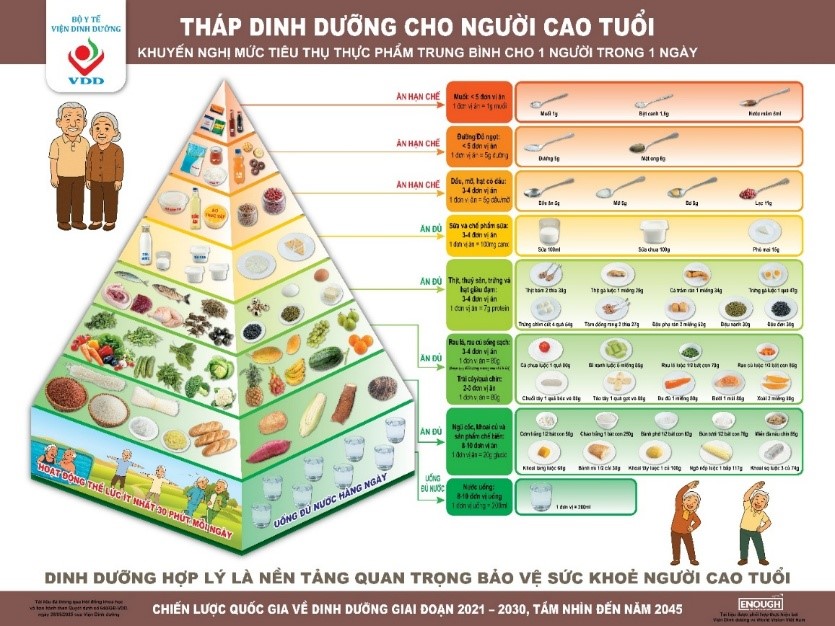 Tháp dinh dưỡng cho người cao tuổi (nguồn Viện dinh dưỡng, Bộ Y tế)