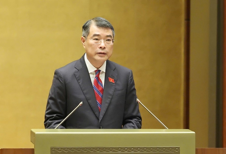 Thủ tướng Chính phủ Lê Minh Hưng trình bày Báo cáo của Chính phủ. Ảnh: VGP/Nhật Bắc.